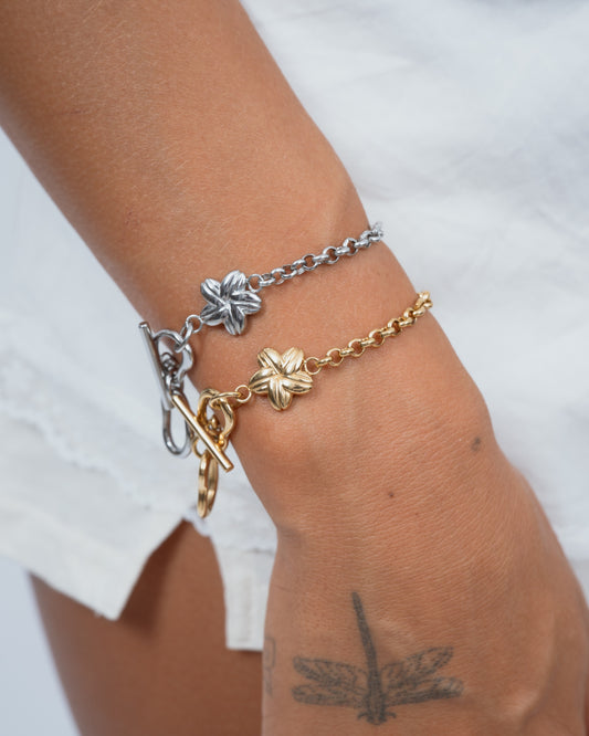 Cowrie Plumeria Toggle Clasp Bracelet