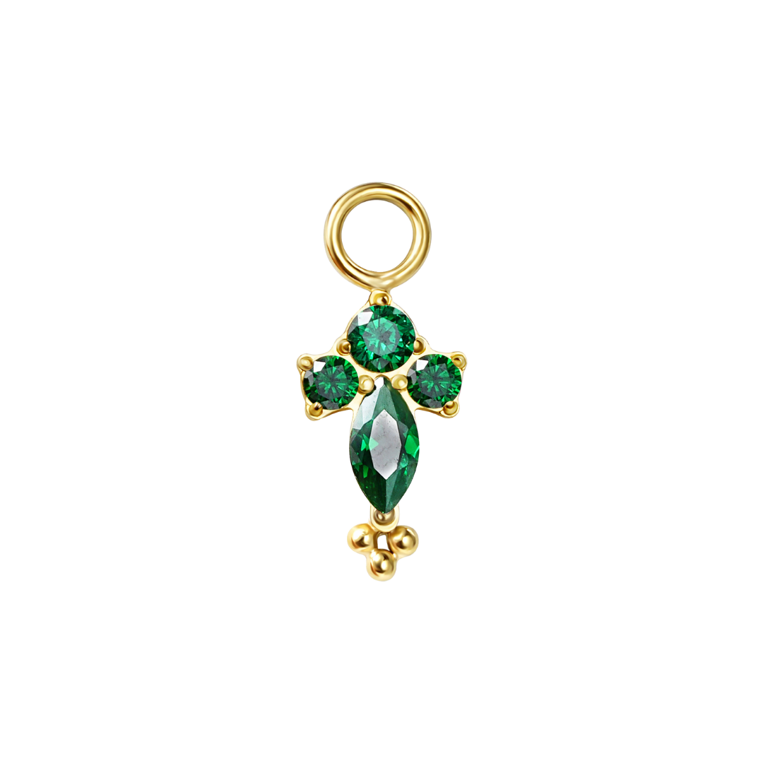 This Green Snow Cross Charm features a marquise cut center stone framed by round, prong set crystals for a vintage inspired look.