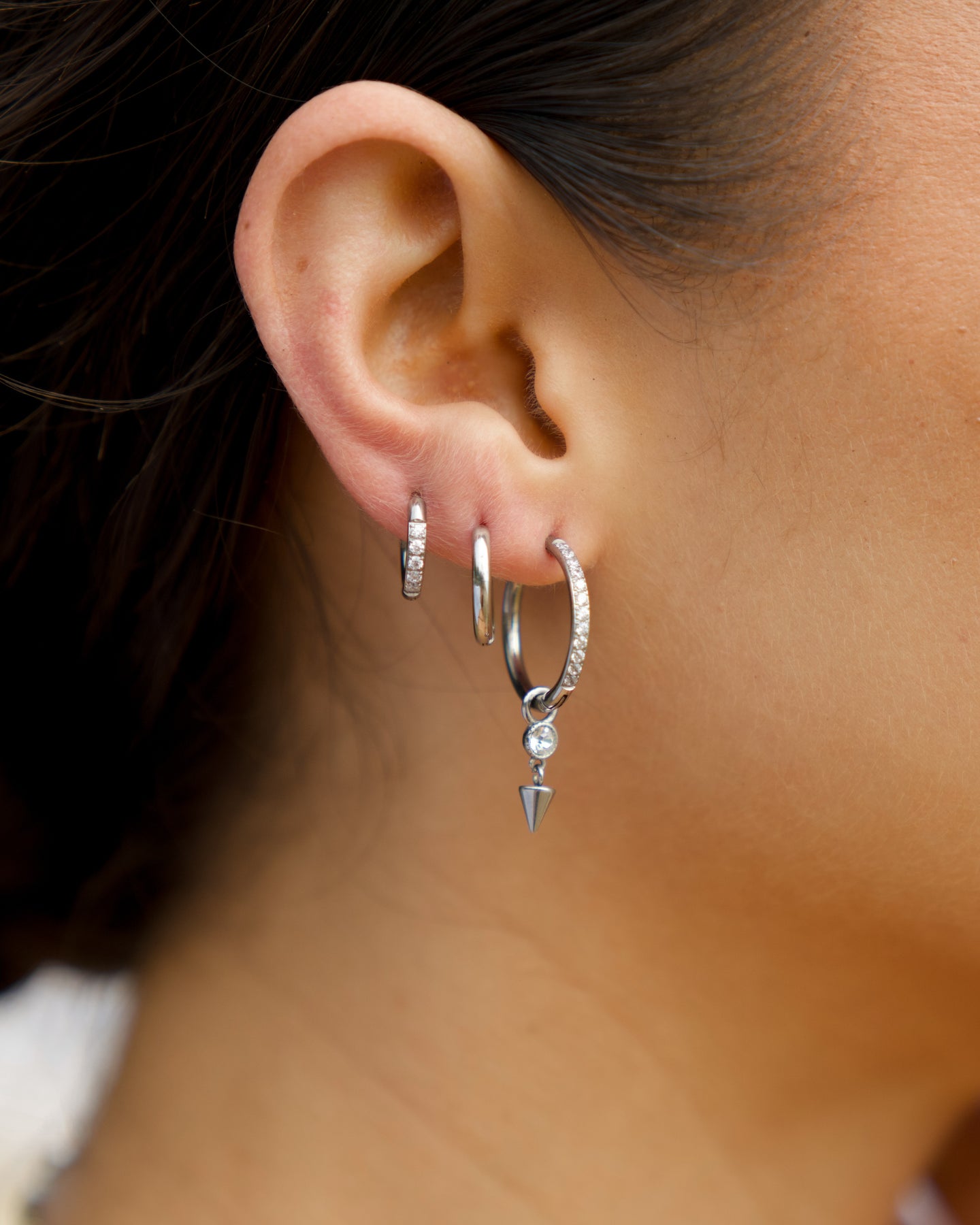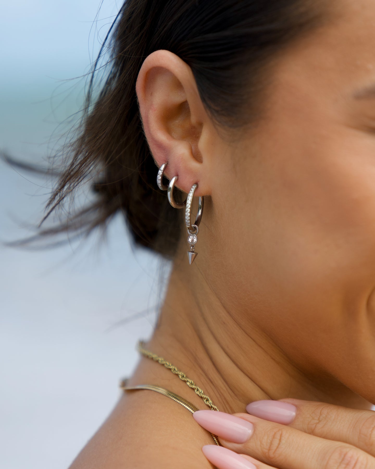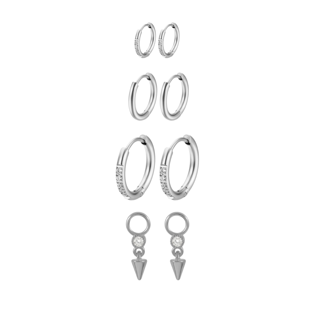 A cool-toned lineup for silver lovers—this bundle blends shimmer and shine with a mix of sparkle and classic hoops in three sizes, plus edgy Baby Dagger Charms to finish the look. Stack them, swap them, or wear them solo—the styling possibilities are all yours.